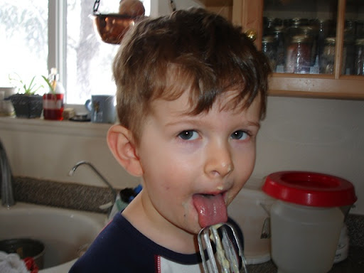 Tate has been getting the urge to cook lately. Last week it was muffins. Here he is enjoying the "fruit" of his labor!