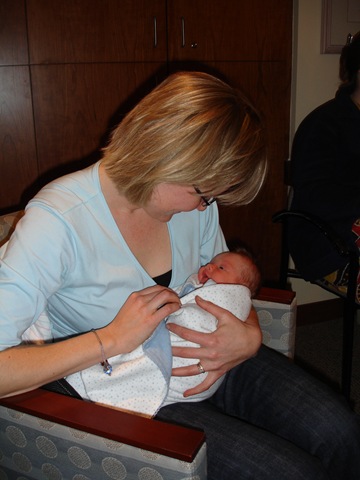 Here are some pictures. First is of Jordan holding Chase with her Mom and Dad and us. The others are pictures of Tyler and Jen holding Chase for the very first time - sweet moment.
