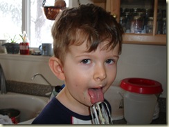 Tate has been getting the urge to cook lately. Last week it was muffins. Here he is enjoying the "fruit" of his labor!