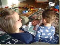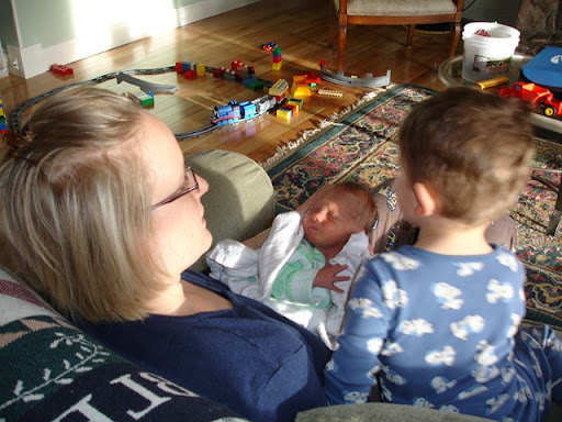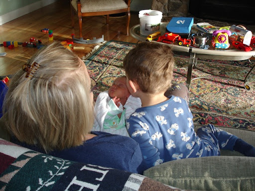 In his little boy way, Tate asks if he can "pet" the baby! He loves to stroke the baby's head and give him kisses - it is the cutest thing I have ever seen!