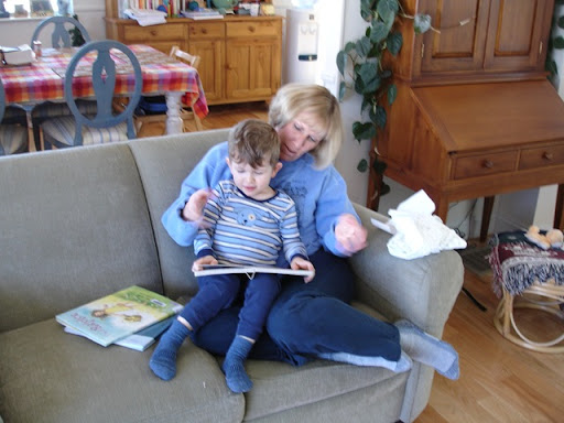 My sweet friend Kathy came over to meet Chase and visit with me and Tate for lunch on Friday...what a treat! I totally forgot to get a picture of her holding Chase, which she did for most of the time she was here, but I did get a picture of her and Tate spending some good quality time together reading some books!