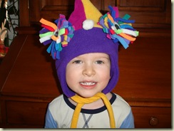 Here is Tate in his funny hat he wears out in the blistery cold of Evergreen.