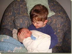 Tate held Chase today and said "he is heavy!" Tate is such a good big brother, he was so gentle and gave him lots of kisses.