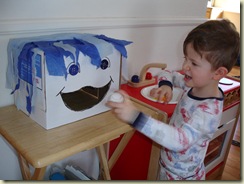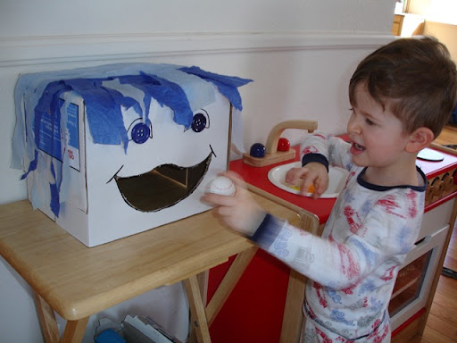 Tate and I have added "activity time" to our day. Our first activity was making a ball-hungry box face we named George. He eats ping pong balls that are tossed from a desired distance. Yesterday we started making Valentines for his classmates for school on Thursday. I can only pray that they don't feed him any sugar tomorrow!