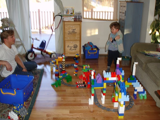 Every night after dinner Daddy and Tate create these elaborate lego track systems for Thomas the Tank engine. This is one of their best so far!